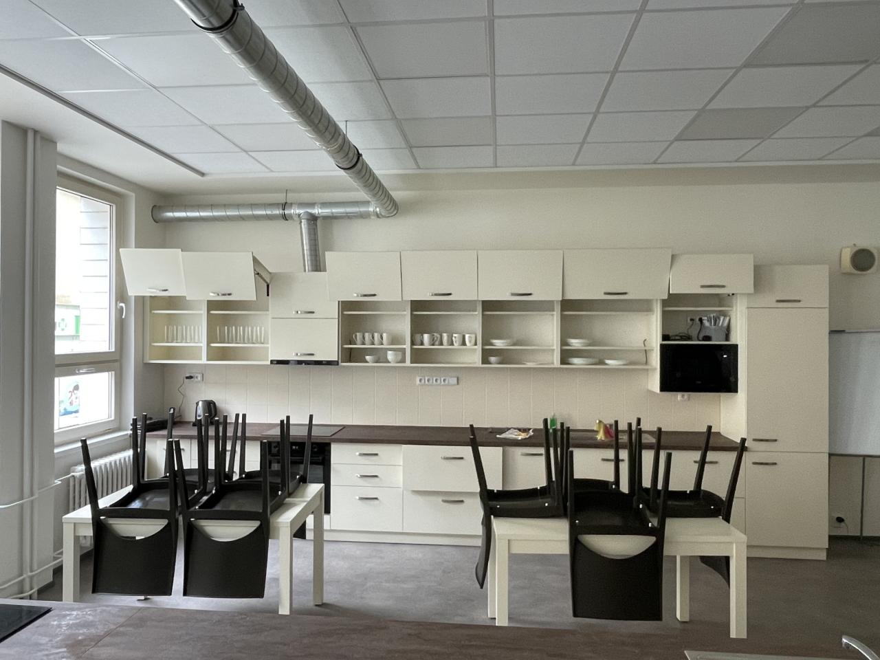 V prostorách žákovských kuchyněk byly již kompletně nainstalovány nové moderní kuchyňské linky včetně spotřebičů, dodáno nové nádobí i potřebná pračka a sušička prádla. Prostor je osazen i novou sanitární keramikou a ostatním nábytkem.