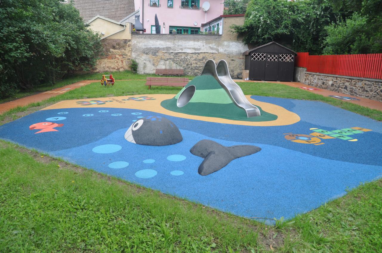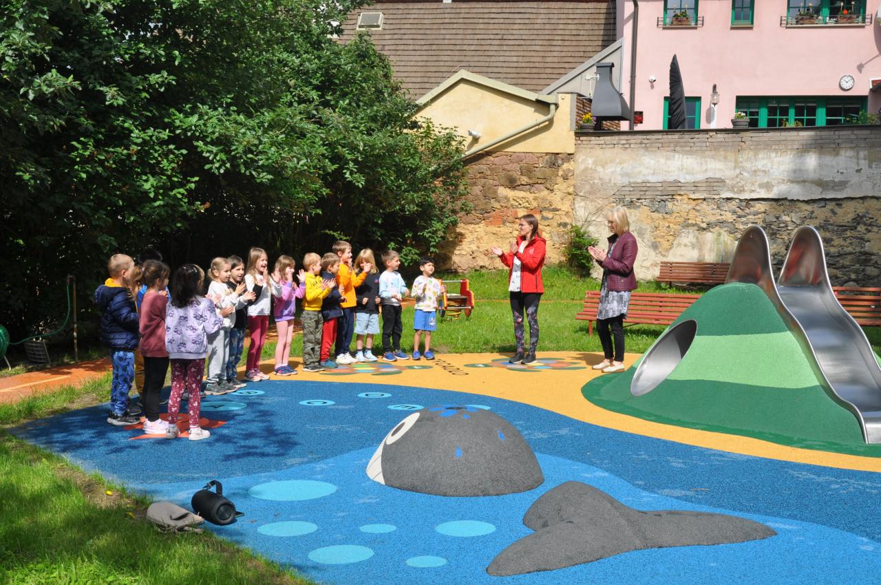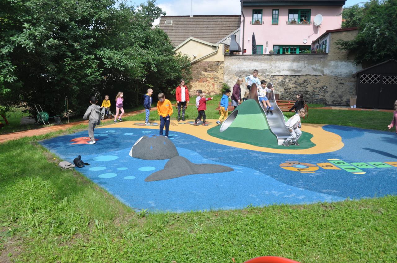 - Toto hřiště, které se nachází v zahradě školky, bylo realizováno firmou 4soft, s.r.o. a jeho výstavba stála 737 903,02 Kč.