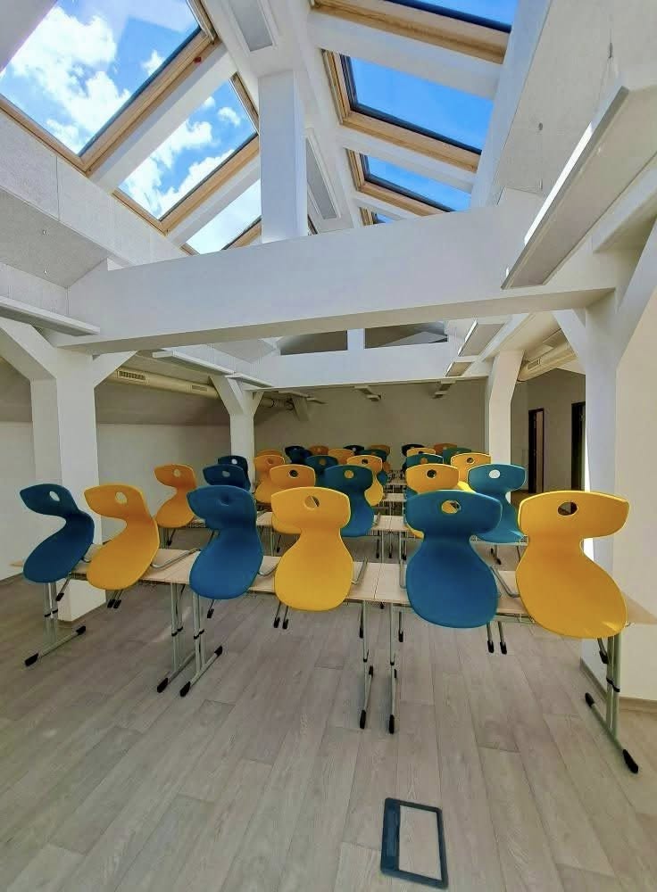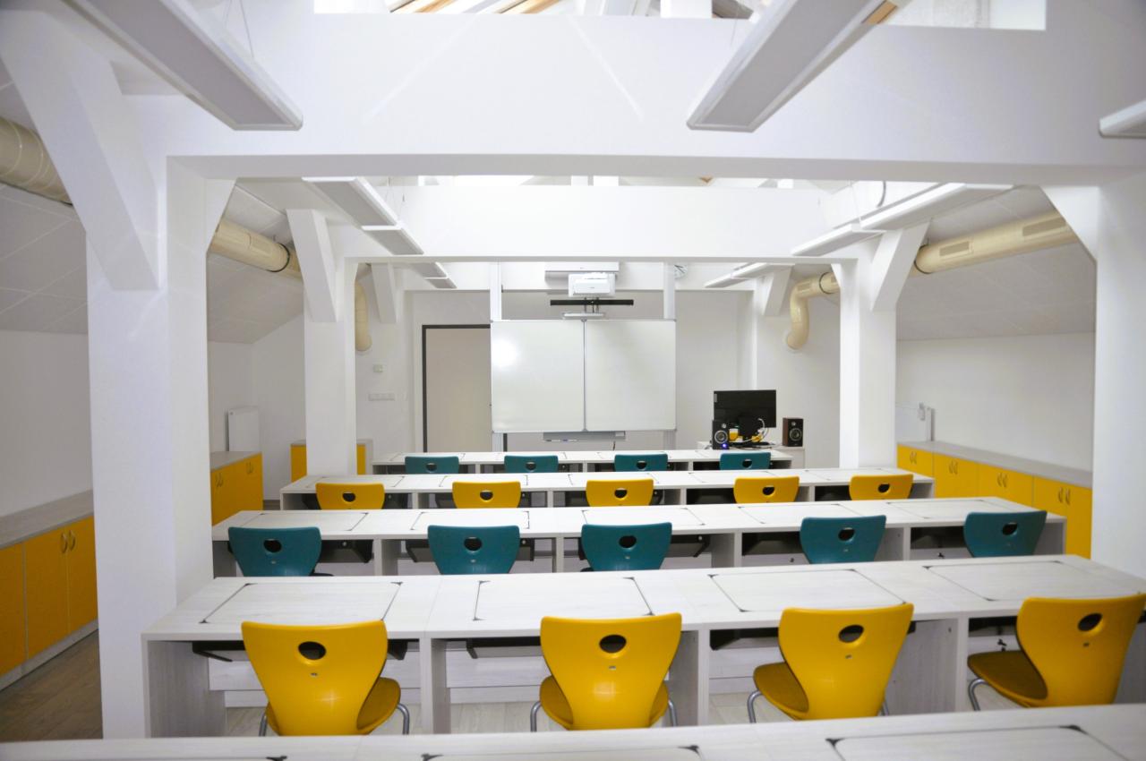 V dosud nevyužívaném podkroví vznikly nové odborné učebny cizích jazyků, zeměpisu a ateliér digitálních technologií. Součástí projektu je také nový výtah, který zajišťuje bezbariérový přístup do všech pater.