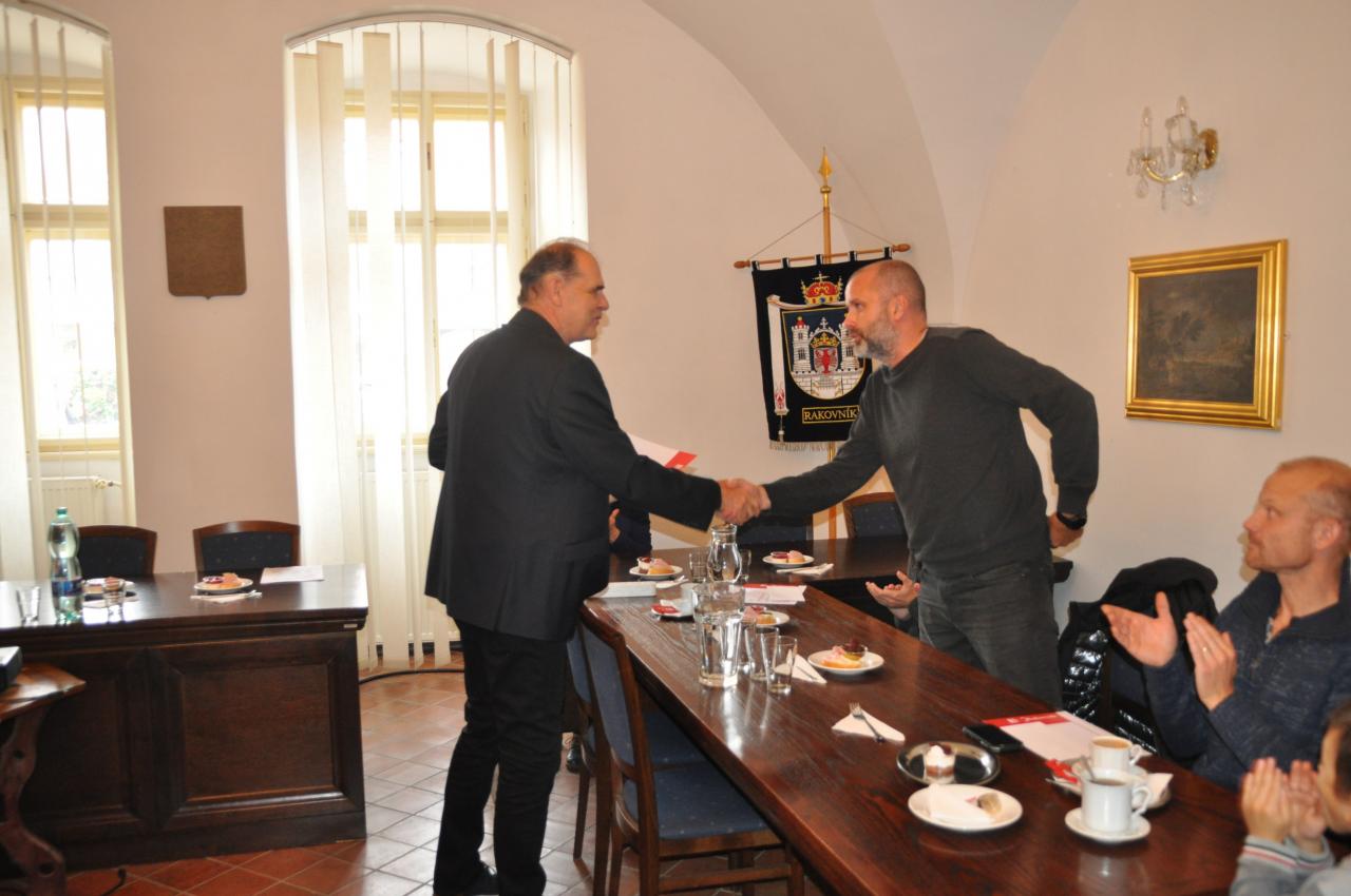 V pondělí 19. září proběhlo ve Wintrově síni rakovnické radnice předání ocenění nominovaným trenérům mládeže za jejich sportovní přínosy, dosažené výsledky a především reprezentaci našeho města. Z rukou pana starosty převzali diplom a finanční dar.
