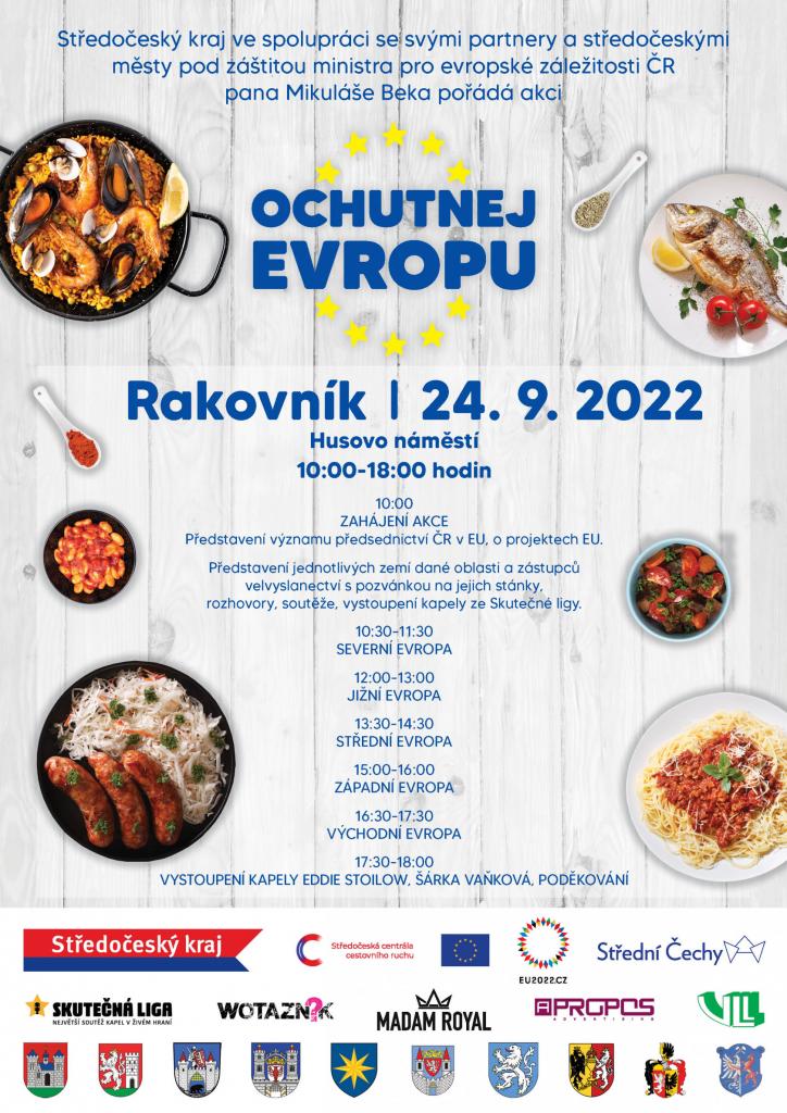 Rakovník ožije evropskými gastronomickými specialitami i zajímavým programem. Míří sem další zastávka série akcí Ochutnej Evropu, kterou v rámci předsednictví České republik v Radě Evropské Unie pořádá Středočeský kraj. Po úspěšných zastávkách v Příbrami, Nymburce, Berouně, Mladé Boleslavi, Benešově, Lysé nad Labem a Kolíně se akce na Husově náměstí v Rakovníku uskuteční v sobotu 24. září od 10 do 18 hodin.