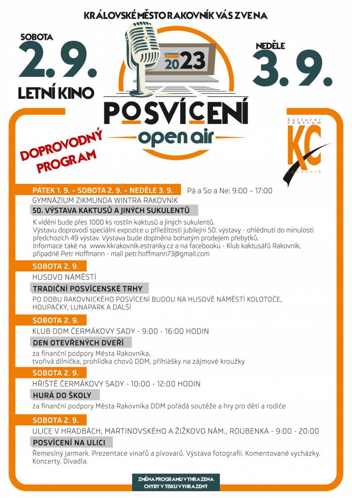 - Výstavu kaktusů a jiných sukulentů, tradiční posvícenské trhy na Husově náměstí, den otevřených dveří v Domě dětí a mládeže a další program najdete v přiložených plakátech k POSVÍCENÍ 2023.