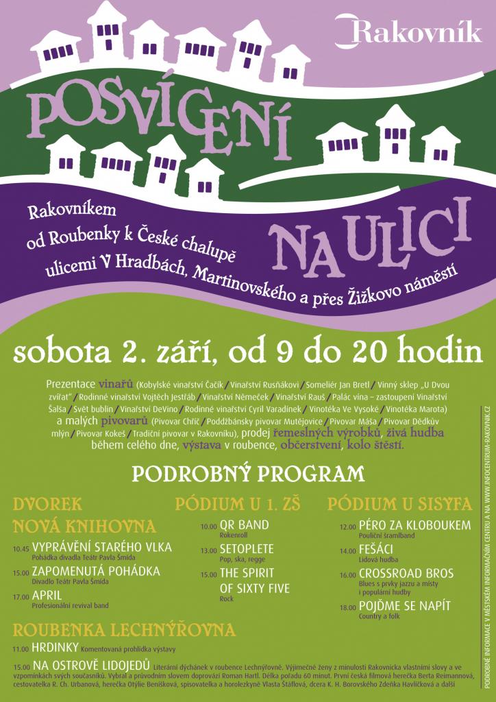 - Proběhne již tradiční akce Posvícení na ulici. Ulice V Hradbách, Martinovského, Masná a Žižkovo náměstí zaplní stánky s vínem, pivem, jídlem a řemeslnými výrobky. Navíc dobrá muzika na třech pódiích, výstava v roubence a komentované prohlídky s Romanem Hartlem.