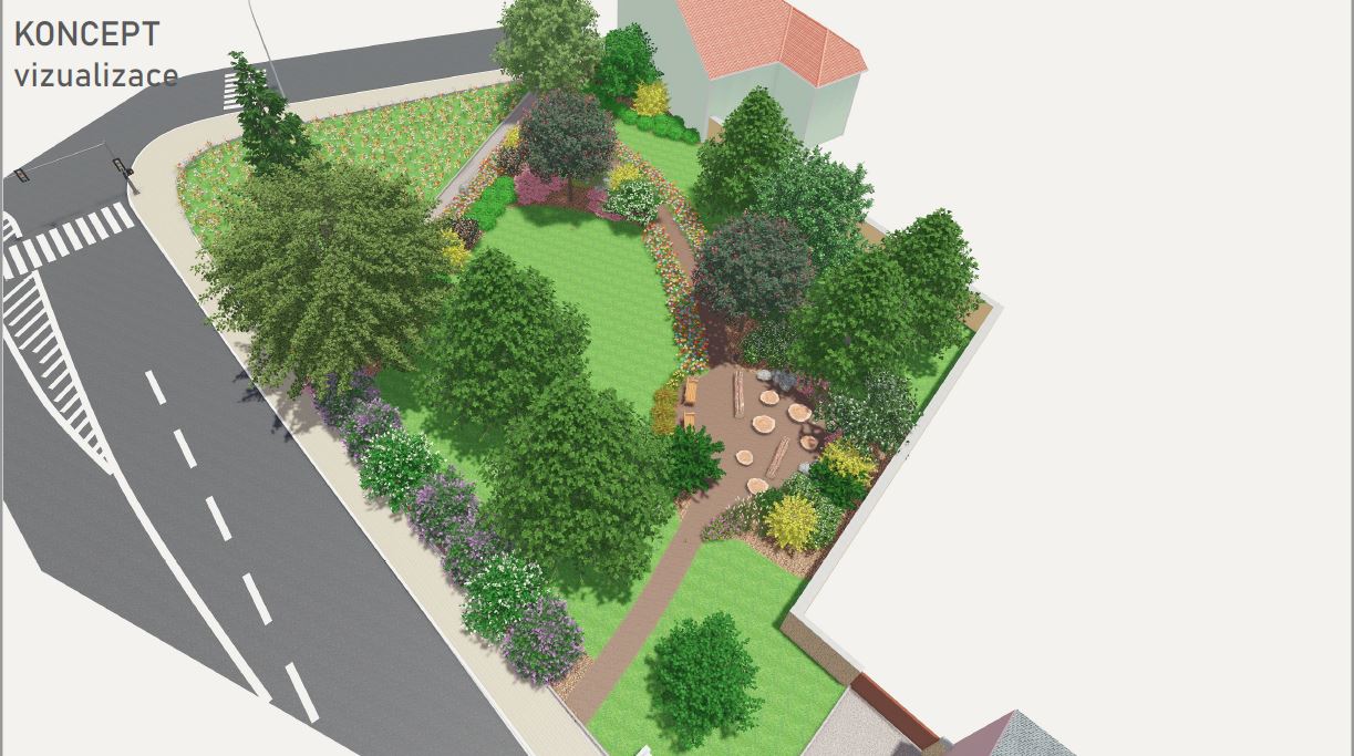 V loňském roce jsme nechali zpracovat projekt na revitalizaci plochy nacházející se na rohu ulice Na Sekyře a Trojanova. Vloni byla plocha srovnána a oseta trávníkem, roste zde několik stávajících dřevin – javor, hrušeň a několik keřů. Pozemek protíná stávající pěší cesta z živičného krytu lemovaná betonovým obrubníkem. Projekt byl vypracován tak, aby byly dodrženy všechny estetické zásady. Byly navrženy především opadavé dřeviny, doplněné jehličnany, okrasnými travinami, trvalkami a cibulovinami. Při návrhu byl kladen důraz na nenáročnost údržby a snížení pořizovacích nákladů se zachováním rekreační a estetické funkce parku. Stávající chodník bude zachován, doporučeno je vyměnit chybějící, či poškozené kusy betonových obrubníků. Na tento chodník je navázáno mlatovou cestou, která v hrubých obrysech kopíruje vyšlapanou živelnou stezku. Kolemjdoucím bude umožněno v rámci této komunikace využít několik odpočinkových ploch vybavených lavičkami. První plocha směrem z ulice Trojanova je, mimo lavičky a odpadkového koše, doplněna o vodní prvek – kamennou mísu s vodou sloužící jako pítko pro ptáky. Druhá možnost menšího posezení je situována pod vzrostlou hrušní. Na tu navazuje hlavní zájmová oblast parčíku s jednoduchými sedacími prvky ze dřeva – kládami a špalky.