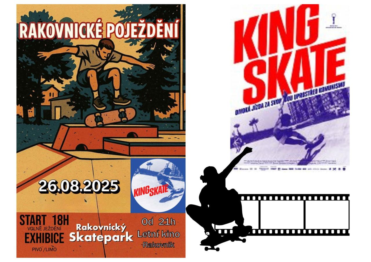 V úterý 26. srpna 2025 se v Rakovníku uskuteční akce, která spojí volné jízdy na skateparkových překážkách s promítáním kultovního dokumentu KING SKATE.