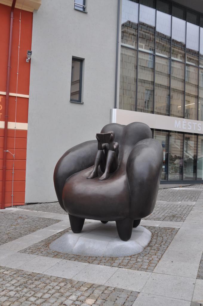 „Čtenář v křesle“ je anonymní čtenář pohroužený do bezpečného světa knihy, obklopený měkkou hradbou křesla, které zároveň navozuje pocit měkkého mráčku, jenž nese čtenáře ve výšinách imaginace. Křeslo nás chrání před pragmatickým světem kolem nás a dovoluje nám unikat do světa představ a fantazie. Je to snové křeslo, a čtenář v něm je záměrně anonymní a symbolická figura, snadno zaměnitelná za kteréhokoliv čtenáře. Zároveň však křeslo dodává soše monumentalitu a posiluje význam a důležitost tohoto tak křehkého námětu. A v neposlední řadě je také třeba vzdát hold světu papírové knihy v době, kdy je ohrožován (a my s ní!) agresívním světem informačních technologií a korektně upravovaných e-knih.