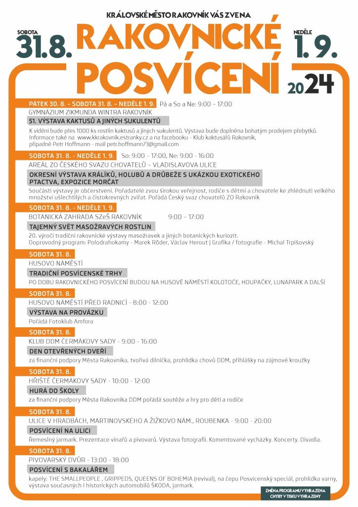 Ve dnech 31. 8. – 1. 9. 2024 se koná v Rakovníku tradiční posvícení s bohatým programem.
