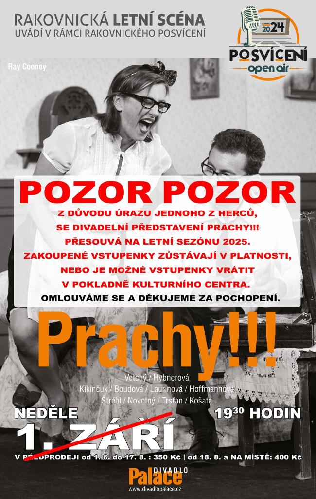 v letním kině proběhne Posvícení OPEN AIR 2024, kde vystoupí v sobotu několik kapel a v neděli zde zahrají k tanci a poslechu Fešáci a večer proběhne divadelní představení Divadla PALACE s názvem Prachy!!!